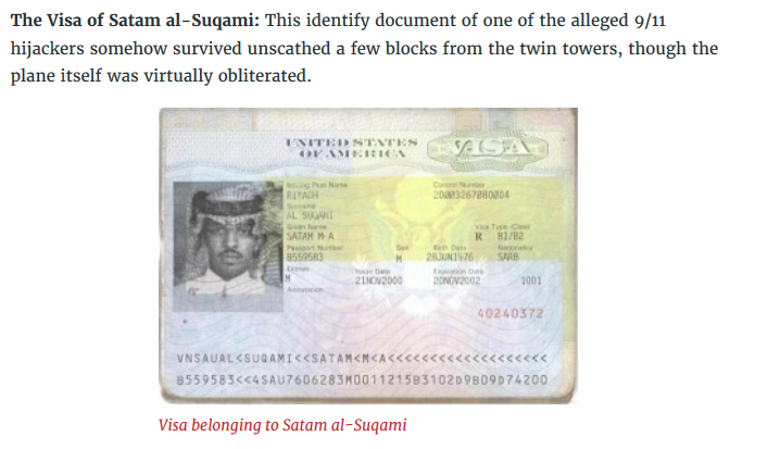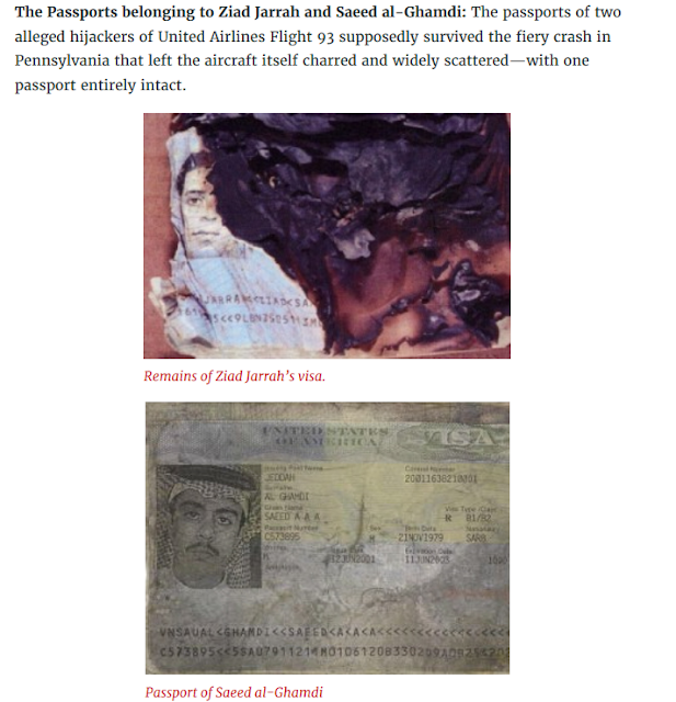 On the same day, when we had to shoot down Flight 93 over Pennsylvania because things were getting too slippery for us to handle, we made sure two of our ID's were found with the debris, that also survived an explosion, massive fireball and devastating crash.